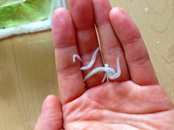 スポイトで除去。藻が多すぎる気がしたのでそれも除去。