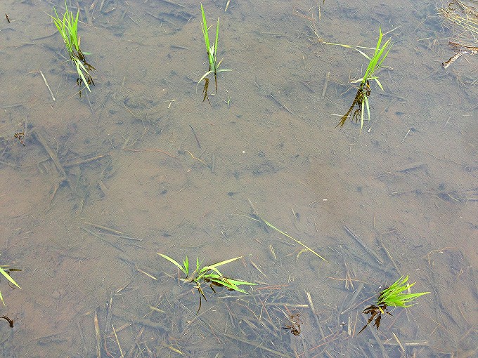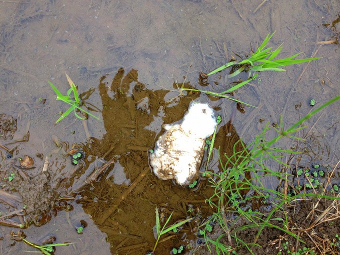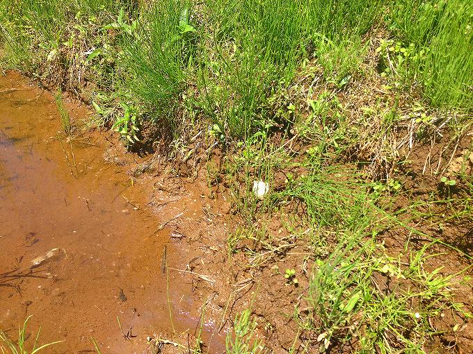 ・田んぼの中で、他のおたまじゃくしに比べて少し赤っぽく見える。